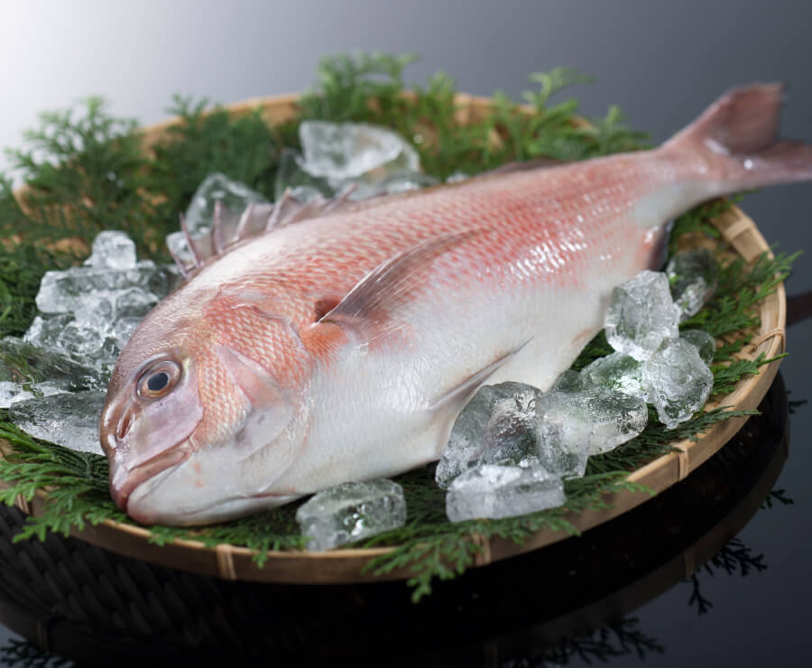 三重県の特産品である「伊勢茶」、「かんきつ」、「海藻」の粉末をブレンドしたエサには、魚の身質改善等に効果があるとされるポリフェノール類が豊富に含まれているため、臭みや余分な脂が少なく、鯛本来の旨みが強い極上のマダイに仕上がりました。