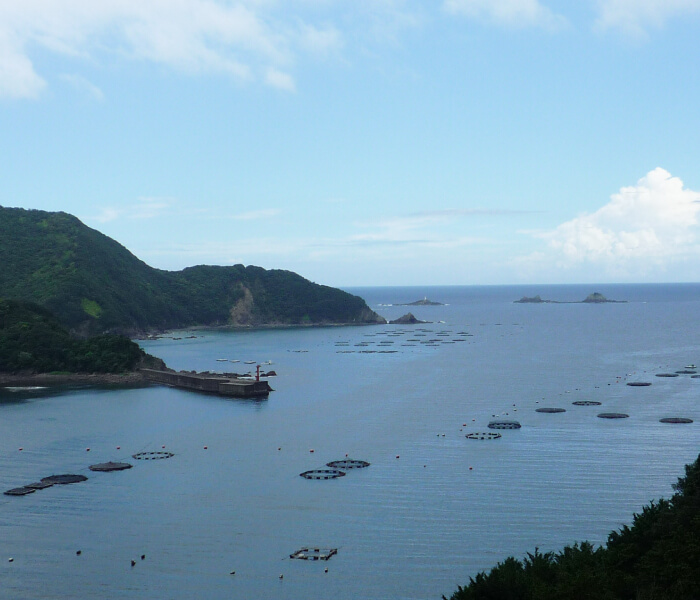 養殖環境から生産・加工・出荷の管理体制に至るまで、消費者の皆様の安全・安心と環境保全に配慮した手法を徹底することで、養殖水産物の振興発展と持続的生産に努めて参ります。